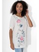 Блуза с вышивкой придаст вашему образу нежности и женственности. Блуза женская прямого силуэта с художественной вышивкой по переду и спинке. Перед блузы с асимметрично расположенной планкой имитирующей застежку и нагрудными вытачками, выходящие из бокового шва. На планке нашиты 4 пары пуговиц двух цветов, несут декоративную функцию (размер и цвет фурнитуры может незначительно отличаться от фото). Рукава втачные одношовные с патой застегивающейся на 1 петлю и пуговицу. Низ рукава обработан швом вподгибку с закрытым срезом, ширина шва - 2,3 см. Горловина овальной формы, обтачная. Боковые швы завершаются разрезом с отделочной строчкой на 0,2 см от края.