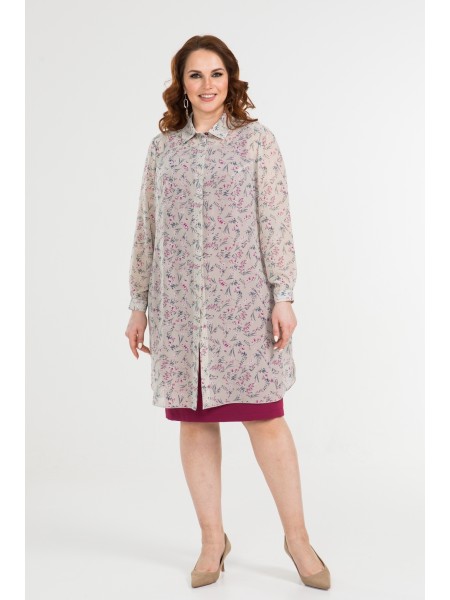 Блуза прямого силуэта с закругленным низом по переду и спинке. Перед по центру с застежкой на петли и пуговицы. Спинка с двойной кокеткой. Рукав втачной, длинный, по низу на притачной манжете, застегивающейся на петлю и пуговицу. Воротник с острыми концами на притачной стойке, застегивающейся на петлю и пуговицу