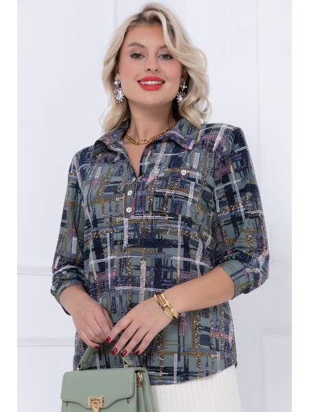 Стильная классика! Доротея – блузка свободного силуэта из ткани "масло" с акцентным принтом. Необычный принт блузки позволит Вам выделиться из толпы. Он создает уникальное сочетание цветов и фигур, которое привлекает внимание и выгодно подчеркивает Вашу индивидуальность. Вырез горловины V-образный с воротником-стойкой. Рукава 3/4, втачные, оторочены манжетами. Блуза отлично сочетается с различными элементами гардероба и может быть использована, как в офисе, так и на прогулку с семьёй или друзьям!