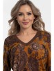 Уютный джемпер полуприлегающего силуэта из трикотажного полотна коричневого цвета. V-образный вырез, низ изделия и рукавов обработаны манжетами выполненными в технике ручного вязания. Длина изделия по спинке от плечевого шва до низа изделия — 60 см. Рост фотомодели — 170 см.
