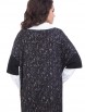 Роскошный джемпер свободного силуэта из трикотажного полотна черного цвета. Джемпер с V-образным вырезом и цельновязаными рукавами. Низ рукавов дополнен широкими манжетами. В боковых швах джемпера разрезы.