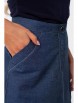 Женственная юбка полуприлегающего силуэта из текстильного полотна синего цвета. Верхняя часть изделия обработана поясом. По переду изделия выполнена застежка на молнию и пуговицу. Юбка дополнена боковыми карманами. По низу изделия выполнена вышивка. Длина изделия по спинке от пояса до низа изделия — см.