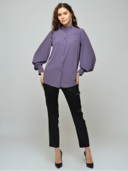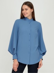 Блузка женская прямого силуэта. Воротник-стойка. Рукав широкий на манжете с декоративной складкой. Низ изделия фигурный.