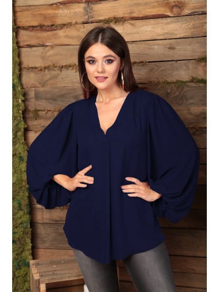 Блуза женская, полуприлегающего силуэта. По полочке идет нагрудная выточка из бокового шва. Вырез V-образной формы с планками и складкой по центру. По спинке средний шов, рукав обьемный, по окату сборка. Низ рукава фигурный, на резинке.