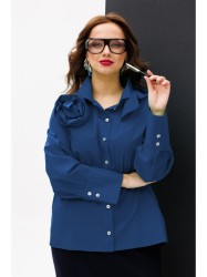 Блузка женская с акцентным декором полуприлегающего силуэта. Рукав "летучая мышь" с подрезом по линии проймы и односторонними складками и манжетой. Застежка- планка на петли и пуговицы. Воротник стояче-отложной. В качестве декора - дополнительный воротник, плавно переходящий в цветок. Благодаря своему крою станет базовой вещью в вашем гардеробе. Легко сочетается с любыми брюками, юбками, платьями и джинсами.