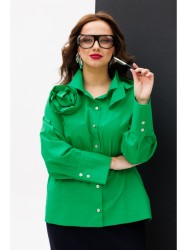 Блузка женская с акцентным декором полуприлегающего силуэта. Рукав "летучая мышь" с подрезом по линии проймы и односторонними складками и манжетой. Застежка - планка на петли и пуговицы. Воротник стояче-отложной. В качестве декора - дополнительный воротник, плавно переходящий в цветок. Благодаря своему крою станет базовой вещью в вашем гардеробе. Легко сочетается с любыми брюками, юбками, платьями и джинсами.