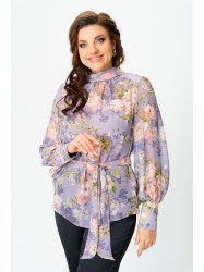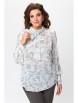 Блузка женская свободного силуэта, с втачным рукавом. Горловина переда с декоративной сборкой и воротником - хомут. Отделкой служит съемный бант. Спинка со средним швом и застежкой по воротнику на две воздушные петли и пуговицы. Рукав длинный со сборкой по окату и низу рукава, на широкой манжете с застежкой на петли и пуговицы.