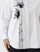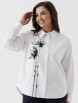 Блузка женская из смесовой ткани для повседневной носки прямого силуэта. Перед имеет принт и закругленную линию низа. Застежка на восемь обметанных петель и восемь пуговиц. Спинка имеет кокетку и две складки, а также закругленную линию низа. Горловина обработана рубашечным воротником с отрезной стойкой. Низ рукава обработан притачной манжетой с застежкой на одну обметанную петлю и одну пуговицу. Такой креативный вариант блузки обязательно привлечет к вам внимание. Блузка станет вашей любимой вещью в гардеробе.