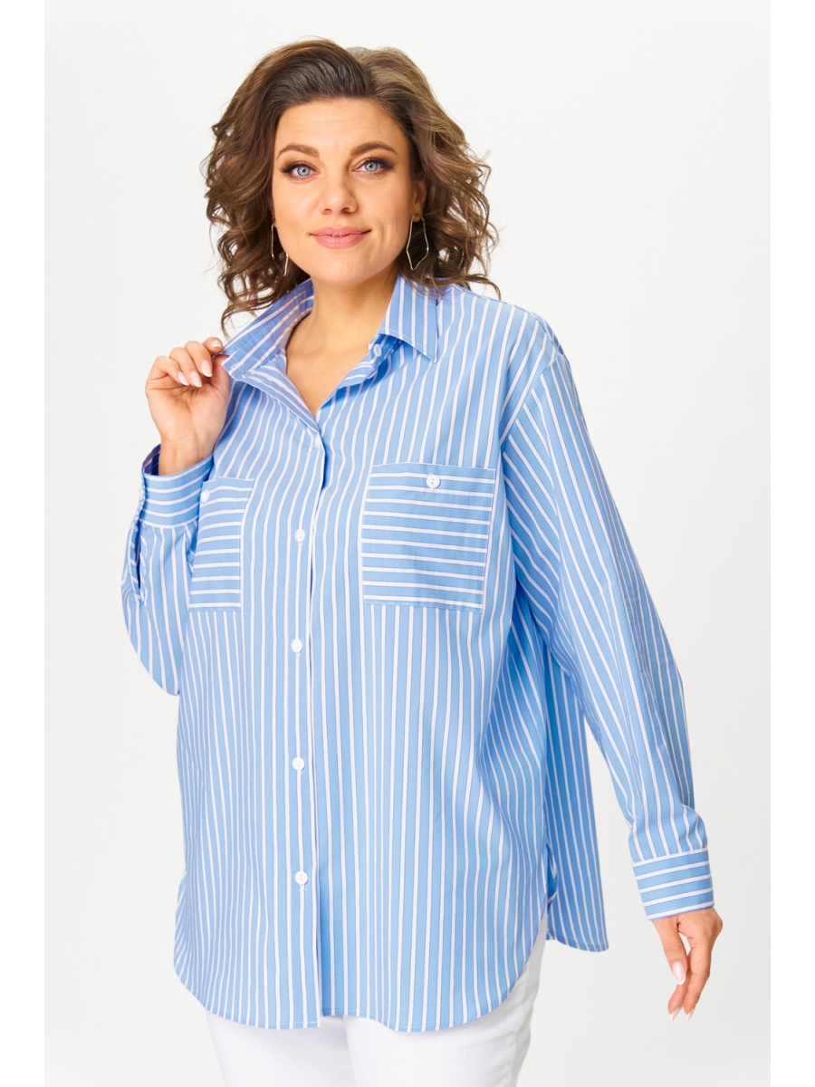 Оформить заказ →Блузка женская свободного силуэта выполнена из легкой хлопковой ткани. Горловина с отложным воротником на стойке. Застежка центральная на петли и пуговицы. Спереди в верхней части накладные карманы. Спинка с кокеткой и складкой из-под кокетки. Плечо спущенное, линия поймы углубленная. Рукава длинные на манжете, с застежкой на петлю и пуговицу. Линия низа блузки фигурная.