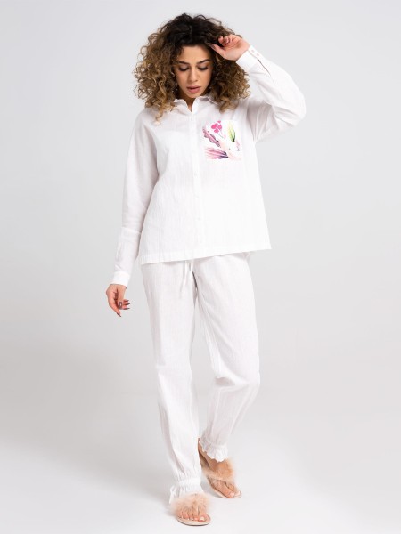 Блузка женская прямого силуэта Рукав цельнокроенный, на манжете По переду накладной карман с ярким летним принтом легкая натуральная блузка для жаркого лета