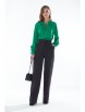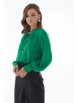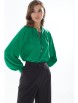 Блузка прямого силуэта. Воротник - стойка, декорирован изящными складками, по переду с V-образным вырезом и завязками. По переду блузки центральным шов, декорированный пуговицами. Рукав реглан длинный, на манжете с застежкой на петли и пуговицы. Длина блузки: 64см. Длина рукава: 52см от горловины