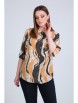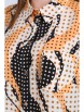 Блузка свободного покроя. По переду застёжкой на 8 петель и пуговиц. На левой полочке накладной карман и прикреплено декоративное съёмное украшение. Рукав длинный с манжетой и застёжкой на 2 петли и пуговицы. Воротник на стойке Рукав свободный и возможно подворачивать. По спинке отрезная кокетка с втачным кантом. Низ блузки с закруглёнными краями. Ткань очень приятная, стрейчевая и струящаяся. Длина блузки по центру спинки 72 см Длина блузки по переду 63 см Длина рукава с манжетой 65 см.