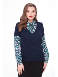 Блузка - имитация трикотажного джемпера и лёгкой блузки. Такой вариант одежды подчеркнёт женственность её обладательницы. Классический стиль поддержит любую Вашу фантазию, в сочетании с различными видами брюк и юбок. Отличная одежда для тех кто предпочи тает комфортную классическую одежду.