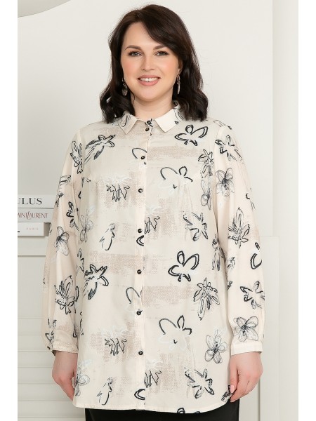 Блуза женская прямого силуэта, с фигурным низом. Перед с цельновыкроенной планкой, застегивающейся на петли и пуговицы, спинка с кокеткой. Воротник отложной на стойке. Рукав длинный на притачной манжете, застегивающейся на петлю и пуговицу.