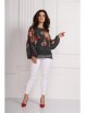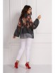 Комплект женский двух предметный состоит из топа на бретелях и очень нарядной блузки из тонкого шифона с купоном. Основным украшением блузки служит рукав. Рукав состоит из трех частей. Верхняя часть рукава реглан, по средней части рукава идет два фигурных подреза со сборкой. Заканчивается рукав резинкой. Блуза свободного кроя.Горловина-стойка. По переду обработан разрез и завязывается на завязку.
