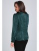 Блуза женская, прямого силуэта с нагрудными вытачками. Воротник втачной, стойка, украшенный стразами по правой стороне. От линии груди к стойке, по левой стороне, идут складки, закрепленные по горловине. Застежка центральная, по спинке, на «слезку». Рукав втачной, одношовный, с притачным манжетом.