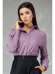 Оформить заказ →Женская блуза из натуральной ткани свободного силуэта. Перед с центральной потайной застежкой. Спинка с кокеткой. Горловина обработана воротником со стойкой. Рукав длинный, прямой на манжете. Манжета с застежкой на 2 петли пуговицы.