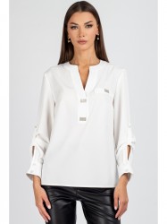Женская блузка полуприлегающего силуэта с элегантными деталями.