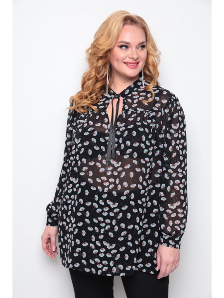 Нежная блузка свободного кроя прекрасно вольется в повседневную жизнь. Изделие хорошо сочетается с брюками и юбками. Блузка выполнена из струящейся ткани. Сборка по всей блузке придаст Вашему образу женственности и нежности. Горловина стоечка украшена люрексовой тесьмой, если развязать будет смотреться как украшение.