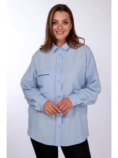 Нежная блузка свободного кроя, которая прекрасно вольется в повседневную жизнь и станет одной из любимых базовых вещей в Вашем гардеробе. Блузка выполнена из натуральной хлопковой ткани в горох. Спущенный длинный рукав, присобранный на манжету с пуговицами. По переду блузка украшена накладным карманом, застегивается на пуговицы. Спинка прямая, воротник классический. Изделие хорошо сочетается как с брюками, так и с юбками. Светлый цвет придаст Вашему образу женственности и нежности.