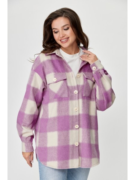 Рубашка женская, повседневная, прямого свободного кроя, из приятного мягкого материала в крупную клетку займет важное место в вашем гардеробе. Рубашка с центральной застежкой по переду на петли/ пуговицы и длинным втачным рукавом на манжете. По переду два накладных кармана с клапанами. По спинке плечевая фигурная «уголком» кокетка с клеткой по косой. Рубашка с фигурным низом, длиной ниже бедра.