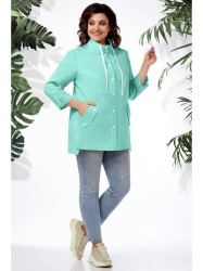 Рубашка женская прямого силуэта с длинным втачным рукавом и центральной застёжкой на 7 кнопок, выполнена из джинсовой ткани. Перед с фигурными рельефами, в швах рельефов карманы с декоративными клапанами и кнопками. От бокового шва на перед идут подрезы с кнопками, заканчивающиеся шлицами .Спинка удлиненная ,с кокеткой и вертикальными рельефами от нее. На левом рукаве нежная вышивка. Низ рукавов с отворотами на длину 3/4 и патами с кнопками. Воротник-стойка с кулисой и контрастным шнуром с наконечниками.