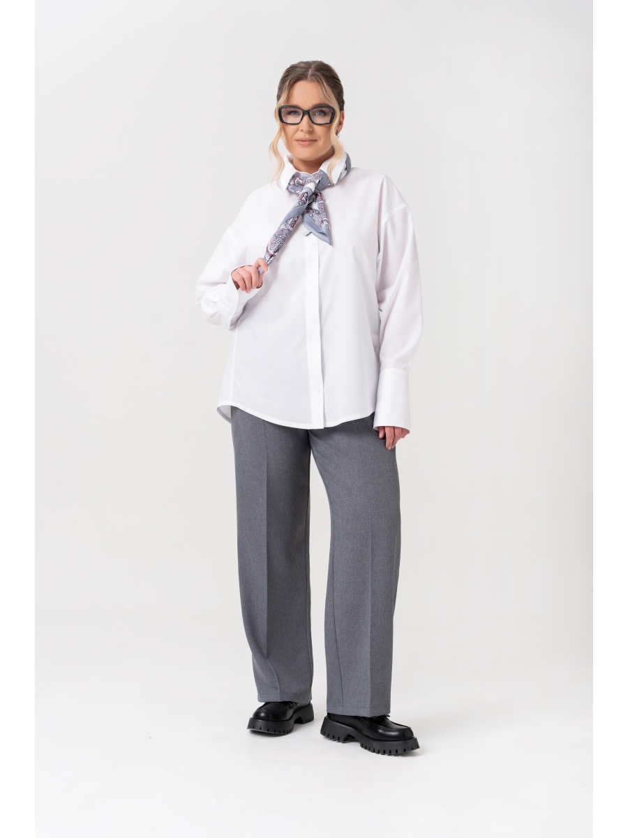 Рубашка оверсайз представляет собой универсальный выбор для современной женщины. Созданная из комфортного материала, эта рубашка обеспечивает идеальное сочетание стиля и удобства. Она отличается свободным кроем и посадкой, что делает её идеальным выбором для повседневного ношения, офисной работы или даже вечеринки. Отлично подходит работникам школы. Рубашка оснащена пуговицами и петлями для застегивания, что обеспечивает удобство в надевании и снятии. На рубашке обработаны воротник и манжеты. Спинка с кокеткой и встречной складкой. Отсутствие декоративных элементов делает её универсальной и подходящей для любого стиля. Гладкая фактура материала и длинные рукава добавляют элегантности и изысканности. Благодаря своему универсальному назначению, эта рубашка подходит как для офисного стиля,  так и для повседневного ношения, и в том числе на выход. Её однотонная структура и бескарманная конструкция делают рубашку идеальным выбором для тех, кто ценит простоту и стиль.