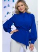 Дизайнерская блуза асимметричного кроя, которая поможет создать стильный деловой образ. Можно сочетать с разнообразным низом: брюками, джинсами или юбкой. Шикарный, пышный, длинный рукав, собран внизу манжетой на кнопках. Блуза скроена на запах, фиксируется двумя кнопками по переду. В комплект входит пояс из основной ткани, подчёркивающий линию талии.