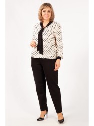 Блузка женская больших размеров, с воротником галстуком, занимает важное место в гардеробе каждой девушки, женщины. Классический крой блузы комфортно садиться на любую фигуру. Данная модель - всесезонная и дополнит ваш базовый гардероб универсальной вещью. Ее можно носить в осенне-зимний и весенне-летний сезоны. Длинные ленты у основания шеи можно завязать как бант, галстук, оригинальный узел или вовсе оставить свободными. Блуза приятна к телу, не мнется, выполнена из нежного шифона стрейч, галстук и манжеты из шелковистого трикотажа. Благодаря отлично проработанным лекалам блузка имеет идеальную посадку для полных женщин. Рост модели 165 см.