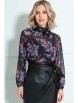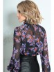 Блузка женская свободного силуэта из шифона. Рукав длинный покроя реглан со сборкой и резинкой по низу. Воротник стойка с рюшей и отделкой репсовой тесьмой по всей длине, застегивающаяся на потайные крючки по спинке. По горловине переда и спинки сборка. В комплект входит съемный топ из креп-шифона и съемная брошь ручной работы.