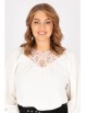 Роскошная блузка прямого силуэта из текстильного полотна белого цвета.Фигурный вырез изделия украшен декоративной кокеткой. Втачные рукава обработаны широкими манжетами.