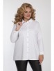 Блузка женская, полуприлегающего силуэта. Застежка центральная, с отрезными планками на петли-пуговицы. Рукав цельнокроеный летучая мышь на манжете. Спинка с кокеткой, переходящей на цельнокроеный рукав. Нижняя часть спинки с вертикальными рельефами. В верхней части центральной детали спинки проложены 3 отделочные строчки с присбариванием. Воротник стояче-отложной с отрезной стойкой.