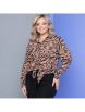 Рубашка прямого силуэта из шифона с отложным воротником на стойке.