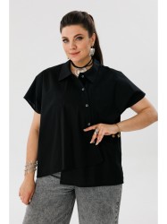 Необычная асимметрия кроя придает модели выразительность: одна сторона может быть слегка удлинена или оформлена мягкими складками, добавляя образу художественную свободу. Короткий цельнокроеный рукав сохраняет лаконичность и комфорт, гармонично сочетаясь с объемным силуэтом.