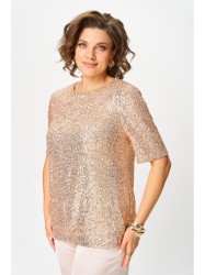 Оформить заказ →Блузка женская прямого силуэта из ткани пайетка с втачным рукавом. Горловина округлой формы обработана обтачкой. По линии груди вытачки. Рукав длиной до уровня локтя. В боковых шах обработаны разрезы. Перед и спинка блузки на трикотажной подкладке.