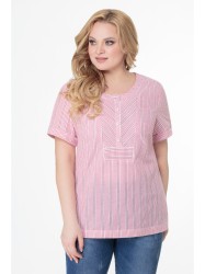 Блуза женская прямого силуэта, выполнена из ткани с вышивкой в полоску. Круглый вырез горловины, застегнут на планку с пуговицами. Рукав втачной.