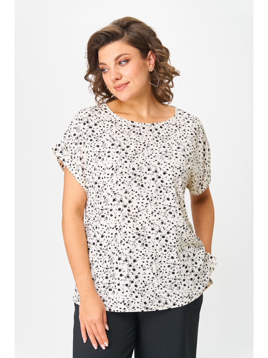 Оформить заказ →Женская блузка, свободного кроя с коротким спущенным рукавом ,по низу рукава планка. Круглая горловина, по бокам разрезы.
