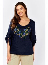 Оформить заказ →Блузка прямого силуэта. По переду нагрудные вытачки и декоративная вышивка. Горловина округлой формы. В боковых швах разрезы. Рукав втачной, расширен к низу, с застёжкой на пату и пуговицу.