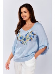 Оформить заказ →Блузка прямого силуэта. По переду нагрудные вытачки и декоративная вышивка. Горловина округлой формы. В боковых швах разрезы. Рукав втачной, расширен к низу, с застёжкой на пату и пуговицу.