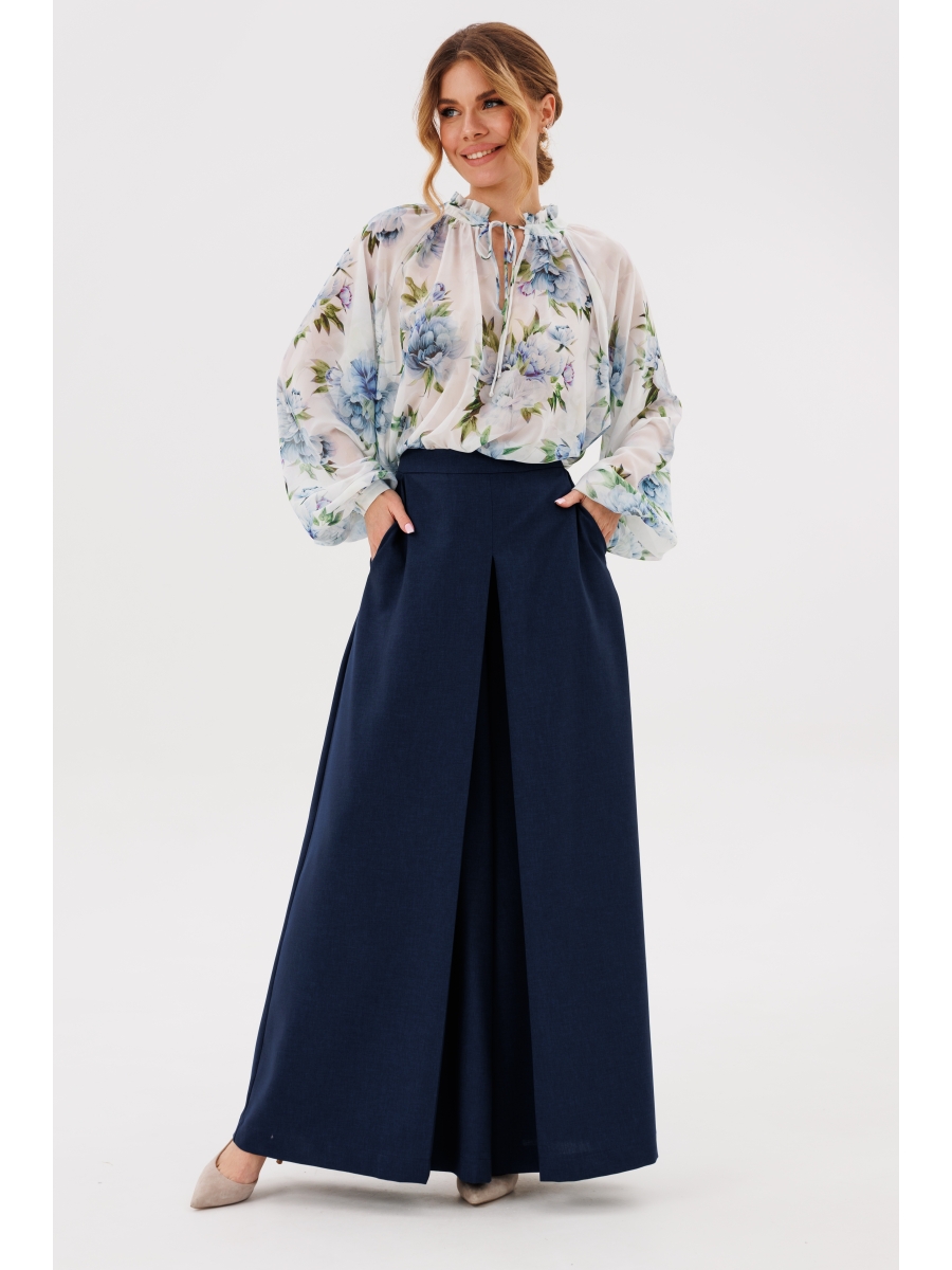 Оформить заказ →Юбка-брюки А-силуэта с застежкой на потайную тесьму молнию с притачным поясом и карманами спереди. По переду встречная складка.