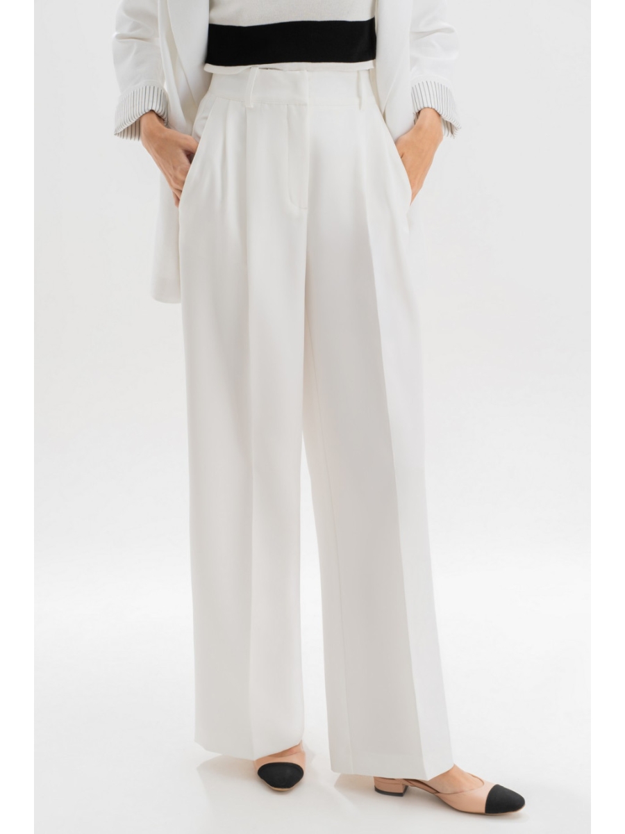 Оформить заказ →Эта модель рассчитана на девушек с ростом 176–182 см, позволяя создать элегантный, вытянутый силуэт. Идеальные белые брюки — основа капсульного гардероба. Модель выполнена в прямом крое, визуально вытягивающем силуэт и придающем образу легкость. Аккуратные стрелки, лаконичные складки от пояса и деликатные вытачки формируют безупречную посадку. Пояс с регулируемыми патами обеспечивает комфортную посадку на талии, а универсальный цвет легко сочетается как с базовыми топами, так и с яркими акцентами. Брюки женские, прямые, выполнены из костюмно-плательной ткани. Передние и частично задние половинки брюк, с отрезным поясом, задние половинки брюк от вытачки до бокового шва с цельнокроеным поясом, с застёжкой на тесьму - «молнию», расположенную в среднем шве передних половинок. Пояс застегивается спереди на один пришивной крючок и 1 петлю и 1 потайную пуговицу. Для регулировки пояса по талии в боковых швах обработаны паты, застегивающиеся на 1 петлю и 2 пуговицы. Передние половинки брюк с боковыми наклонными карманами, частично застроченными от пояса вниз на 3,0 см, с двумя парами односторонних складок от пояса, и 2-мя шлевками. Задние половинки брюк с талиевыми вытачками. Передние и задние половинки брюк с заутюженными стрелками.