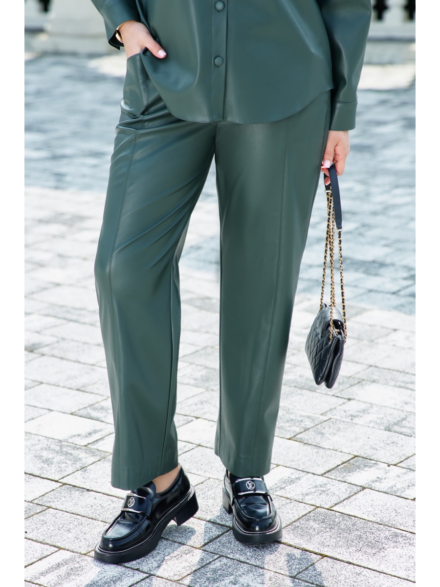 Оформить заказ →Брюки прямого силуэта из кожи с рельефами и отстрочкой по переду. По переду застежка на тесьму молнию в гульфике и пуговицу в поясе. По переду брюк наклонные карманы. Пояс притачной со вставкой эластичной тесьмы резинки в «бочках», что обеспечивает комфортную посадку на фигуру.
