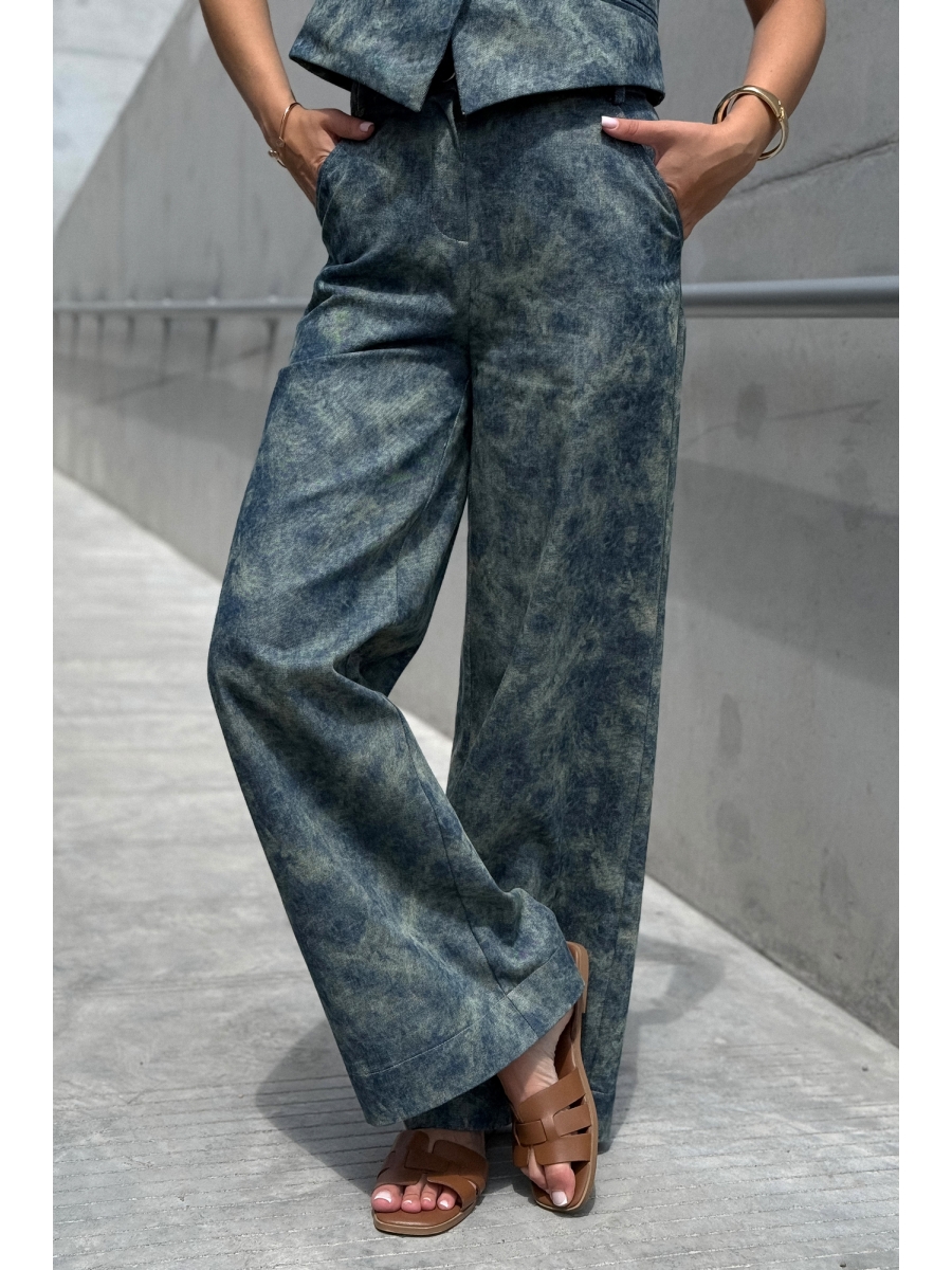 Брюки женские прямые из текстильной ткани (джинс). В боковых швах расположены подрезные карманы. По задним половинкам расположены талиевые вытачки. Верх брюк обработан притачным поясом со шлевками.