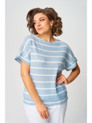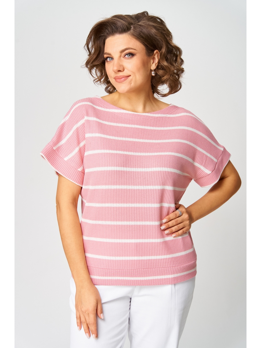 Джемпер женский из трикотажной вязаной ткани. Свободного силуэта. Спущенное плечо, оформлено притачной манжетой. Низ джемпера оформлен притачным поясом. Вырез горловины по спинке треугольный.