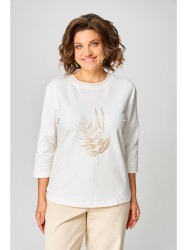 Джемпер женский из трикотажной хлопковой ткани (двунитка). По переду расположен принт. Рукав прямой втачной. Рукав 3/4. Вырез горловины круглый, обработан довязом.