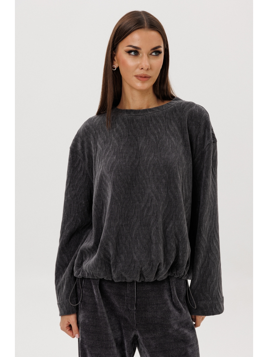 Оформить заказ →Свободный джемпер расширенного силуэта втачного покроя на заниженной линии плеча. Рукав расширенный в области оката. По низу джемпера шнур-резинка с фиксаторами.