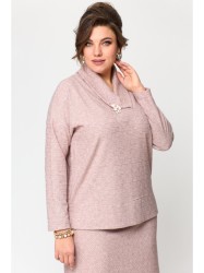 Уютный джемпер из мягкого «структурного» трикотажного полотна свободного силуэта. Воротник с глубоким запахом и складкой переходит в планку на груди. Рукав зауженный длинный. По бокам невысокие разрезы. На воротнике декоративная брошь.
