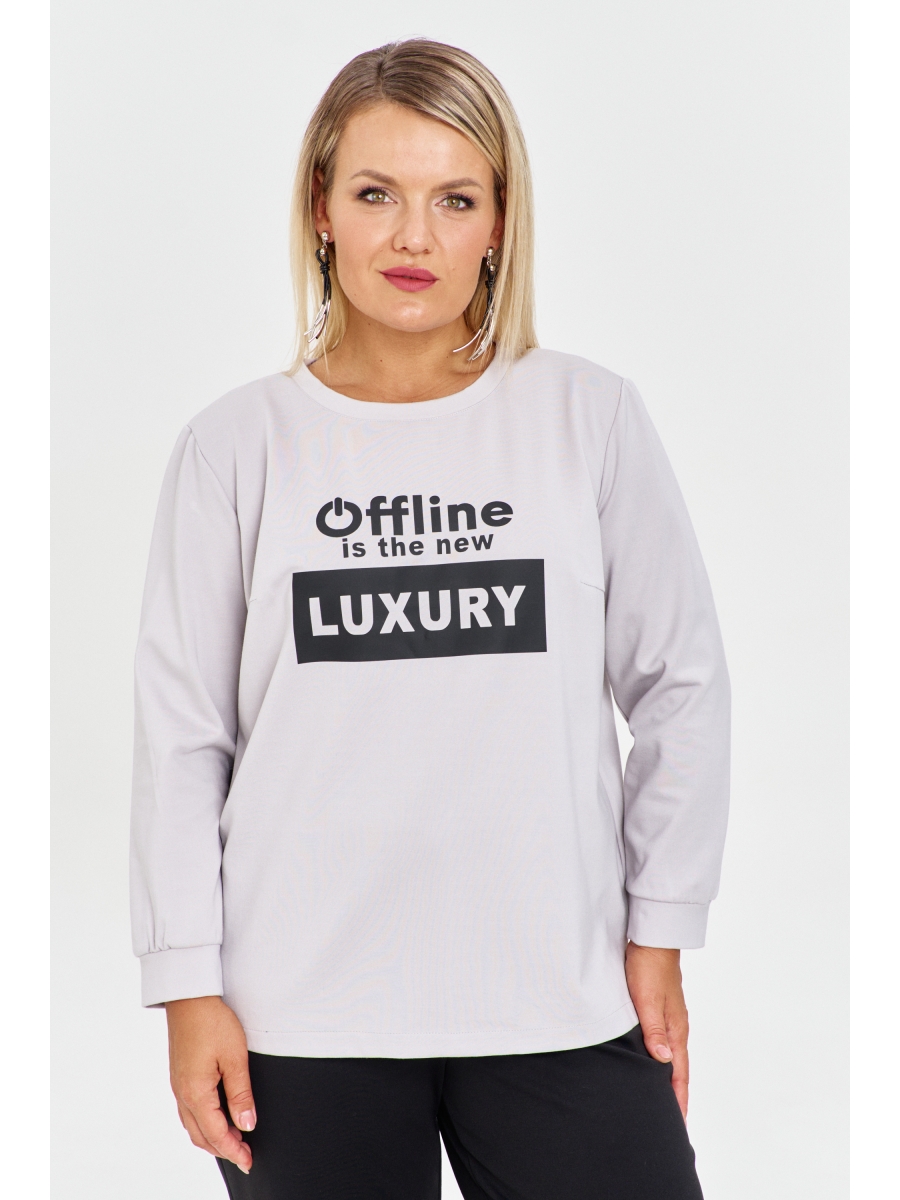 Невероятно комфортный, трикотажный джемпер свободного покроя с круглой горловиной. Рукав втачной, и полномерный по обхвату, на манжете. Для удобства в боковых швах разрезы. На полочке авторская печать «Offline is a new luxury».