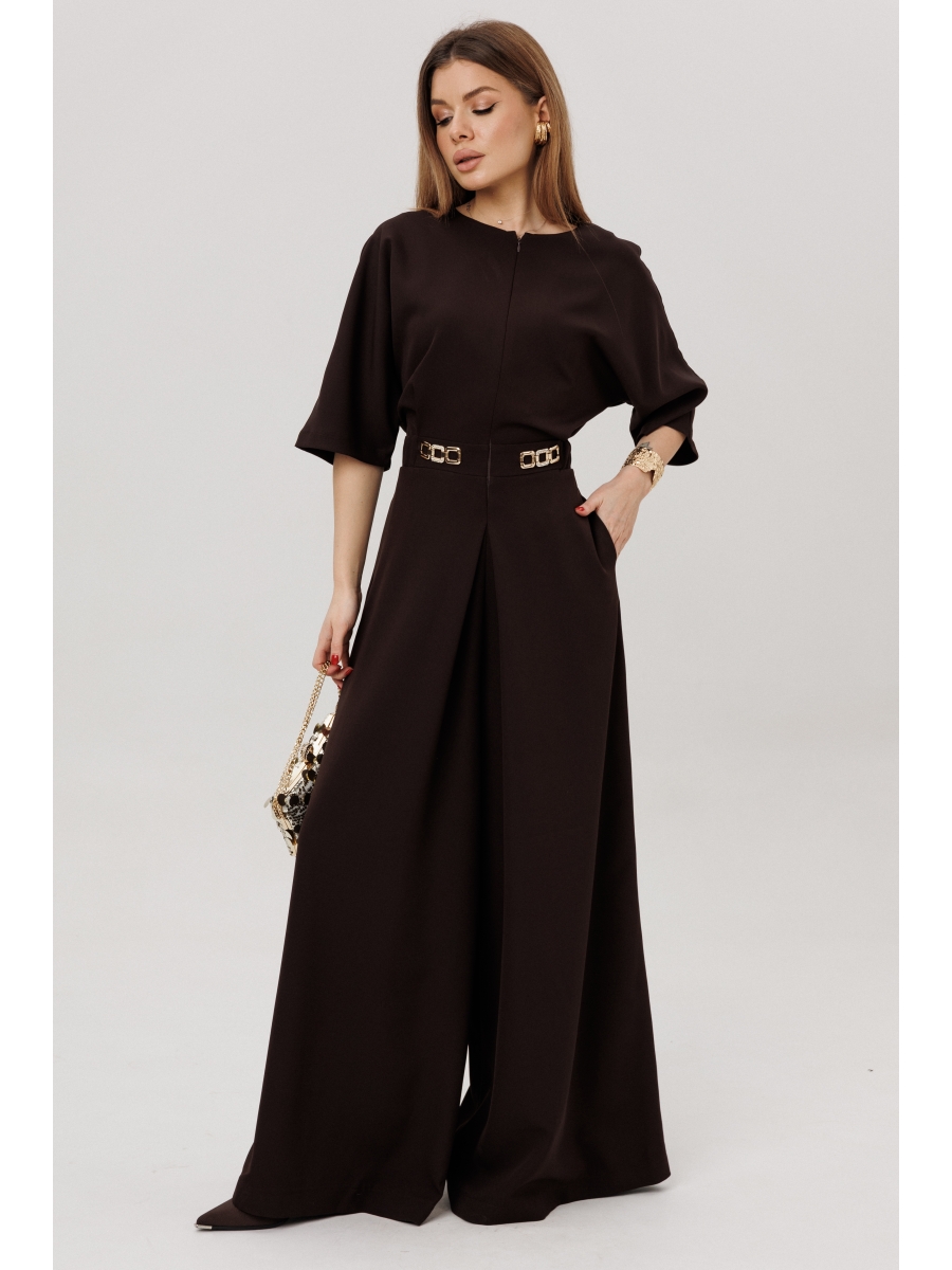 Оформить заказ →Комбинезон свободного силуэта со спущенным плечом и застежкой на потайную тесьму молнию спереди. Вырез горловины круглый. Рукав втачной 3/4. В боковых швах действующие карманы. Пояс на резинке, по переду пришивные декоративные элементы.