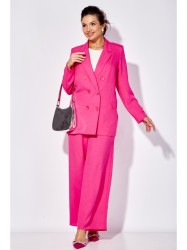 Жакет полуприлегающего силуэта: бочок с выточкой по полочке, по спинке средний шов. Застежка двубортная, карман клапан "обманка". Рукав двухшовный.